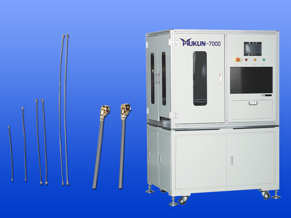 本機是一款全自動控制的同軸線纜加工自動化,本設備實現了全自動裁線、雙端自動端子鉚接,自動性能檢測、自動外觀檢測的全自動一體機。通過全電腦控制系統來實現產品的高品質率。